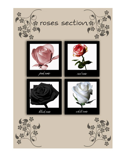 במסגרת הלימודים אני אמור להגיש עבודת גמר לפוטושופ בחרתי לעשות קטלוג לפרחים זה העמוד של הורדים