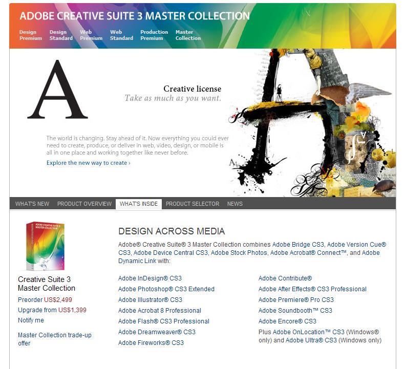 ° http://www.adobe.com/products/creativesuite/mastercollection/
