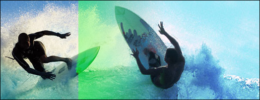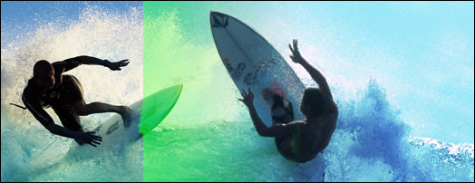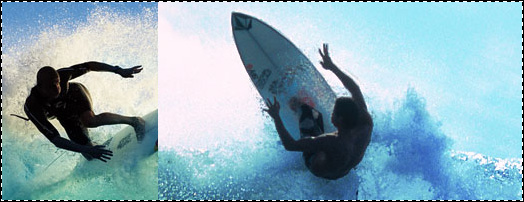 כמו שאתם רואים, השילוב לא מושלם. היד והגלשן קצת שקופים, ורואים דרכם את הגלים. בשביל לתקן את זה, קחו את כלי המברשת:
