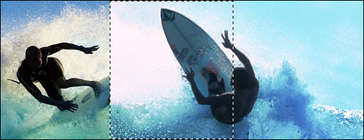 וצבעו בעדינות בתוך המאסק. את הגלשן והיד של הגולש הימני אנחנו רוצים להשאיר, ולכן נצבע בלבן במאסק.