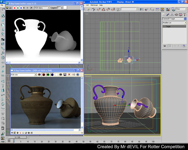 לקח לי בערך שעה וחצי לעשות הכל..אולם בתחרות נאמר לעשות דגש על מידול, יצא לי יותר דגש על טקסטור ורנדר..