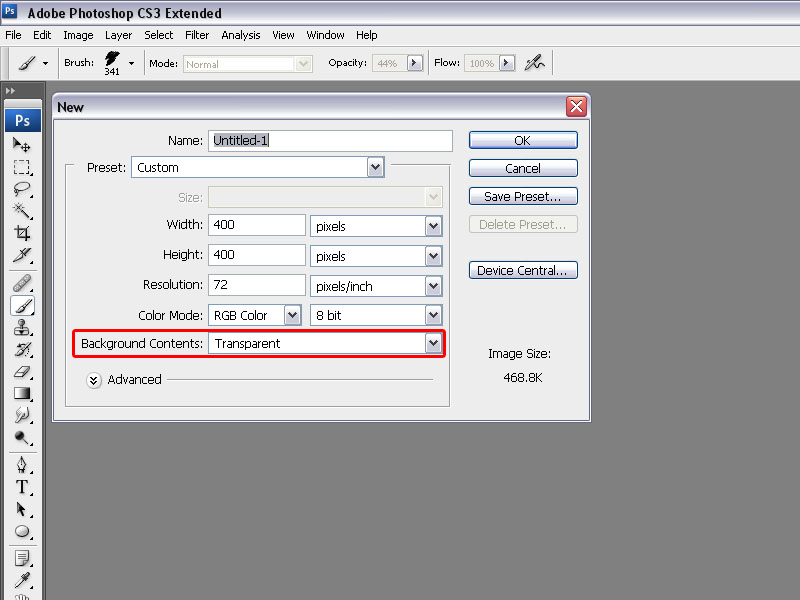 שיטה #3- שימוש ב- Pen Toolנפתח מסמך חדש. שוב נבחר ברקע שקוף וגודל רצוי.