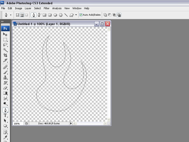 נבחר ב- Pen Tool ונצייר איזה צורה שעולה לנו בראש. אני בחרתי ליצור להבה כזאת.