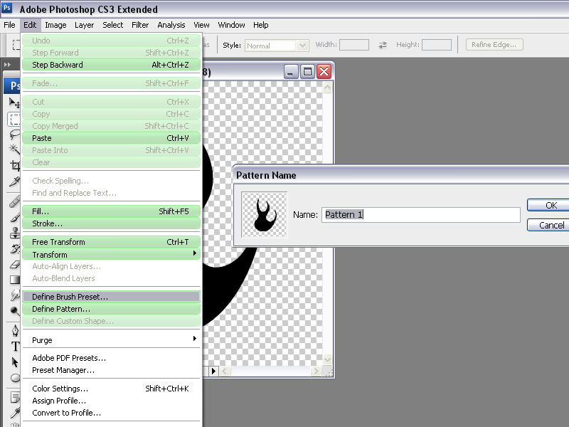 ונשמור את המברשת. בתפריט Edit->Define Brush Preset. ניתן שם למברשת ונלחץ Ok