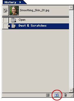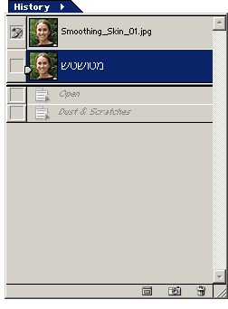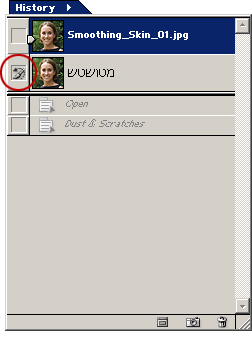 לבסוף, נעביר את סמן מברשת ההיסטוריה לסנאפשוט שיצרנו, ונחזור ל"צילום" תחילת ההיסטוריה.