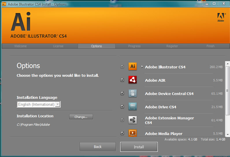 2. לאחר ההתקנה יש להעתיק את הקובץ amtlib.dll, המצוי במחיצת ACTIVATION למחיצה: C:\Program Files\Adobe\Adobe Illustrator CS4\Support Files\Contents\Windows