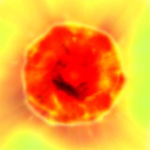 בשכבה מעל צייר גראדינאט רדיאלי עם גוונים של אש - אדום צהוב וכתום.
