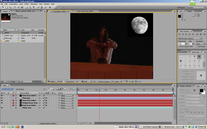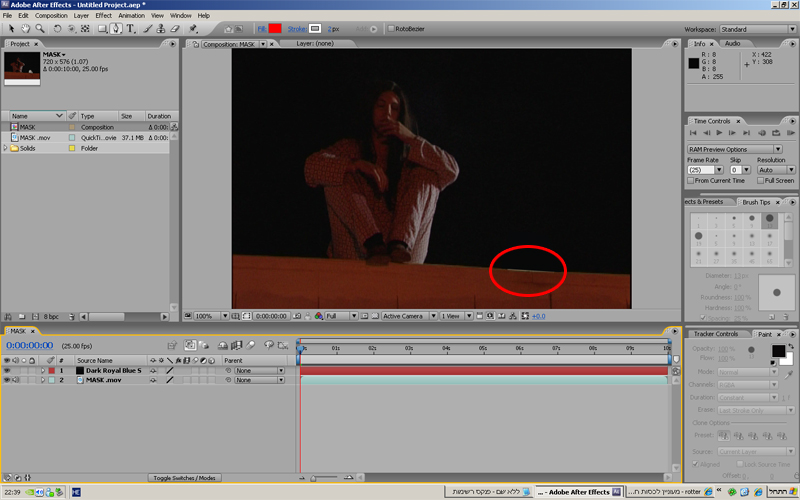 ובעצם יוצר מסכה סביב האיזור שאתה רוצה להעלים ומשנה את ההגדרה שלו מADD לSUBTRACTשים לב שאם זה תמונה שזזה הרבה אתה צריך לתת KEYFRAME לMASK SHAPE ולשנות אותו כל כמה פריימים שיתאים