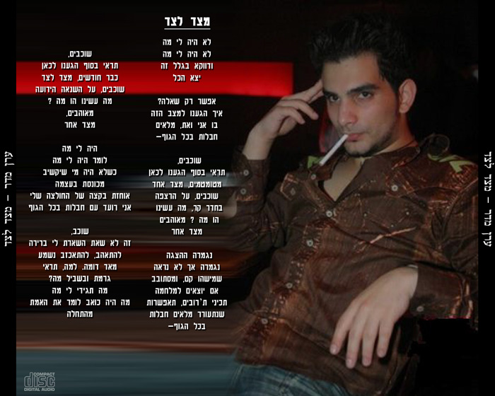 סה"כ, נחמד, אבל לא מספיק מהוקצע לדעתי. האפקט מראה לא כ"כ מתאים לדעתי, הקונספט כן. מאד. אבל הביצוע לא ממש... לא ככה.העטיפה האחורית סבירה, אבל בחרת תמונה לא מוצלחת לדעתי. אפשר היה "לטפל" קצת בתמונה. קצת חידוד, הגברת צבע... שכבות LEVELS או CURVES היו יכולות להוסיף המון. שורה תחתונה, זה בסדר, אבל אם לשפוט לפי העטיפה, כנראה שלא הייתי קונה את הדיסק.  |