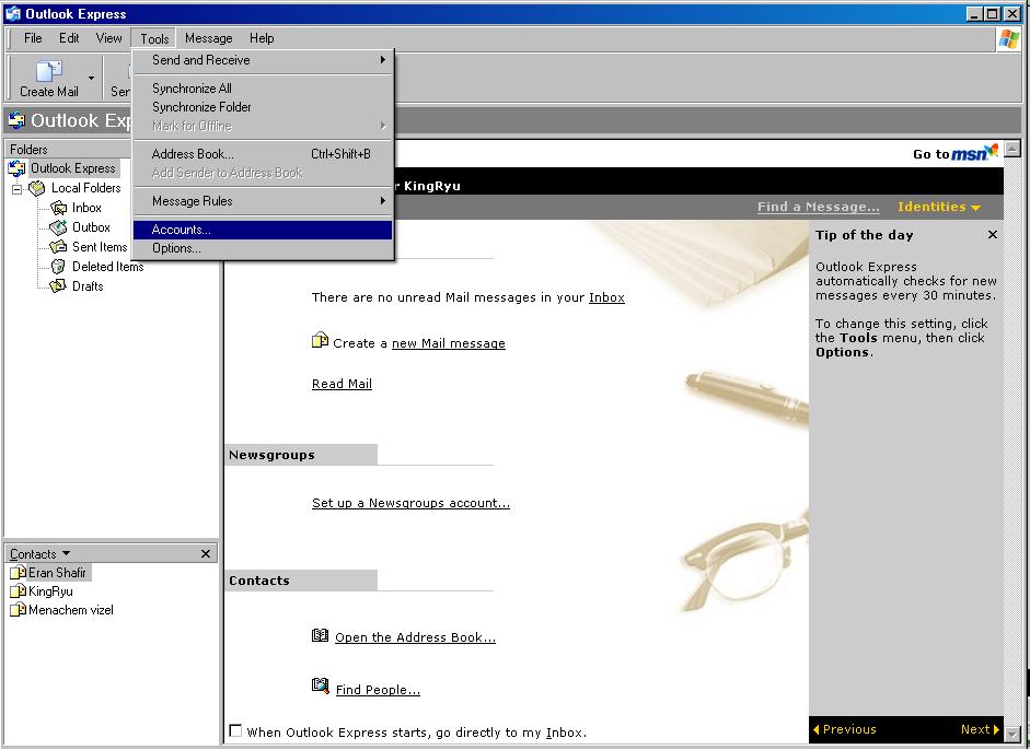 כמה מיכם רצו להגדיר את החשבון Gmail שלהם ישירות ל- OE (Outlook Express) ? אז ככה היום נלמד בפשטות ובקלילות אי להגדיר את החשבון Gmail שלכם ב- OE ככה שהוא יגיע ישירות לתיבה במחשב שלכם.