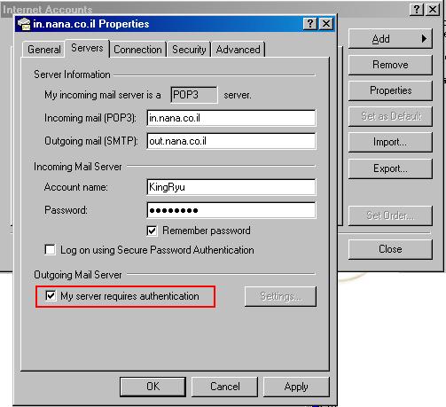 11. בחלון הזה נעבור ללשונית הנקראת Servers ונסמן למטה את My Server Requires Authentication