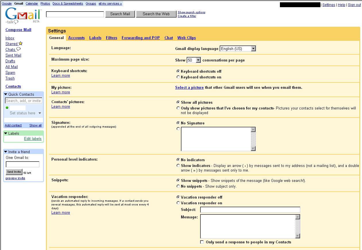 14. בצד ימין/שמאל בפינה יהיה לכם לחצן של Settings ליד הכתובת מייל שלכם-לחצו עליו אתם תגיעו לחלון כזה: