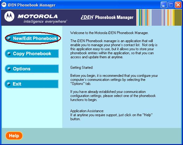 אחרי שהשלמנו את התהליך, ויש לנו ספר טלפונים "משודרג", נרצה להעביר אותו למוטורולה שלנו. נעשה זאת בעזרת התוכנה הראשונה שעבדנו איתה כאן, הלא היא ה Motorola Phonebook Manager. נפתח אותה ונבחר שוב New\Edit Phonebook.