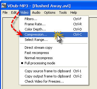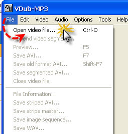 פתחו את התוכנה VirtualDub ע"י הפעלת הקובץ vdub-mp3-freeze.exe.