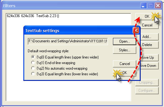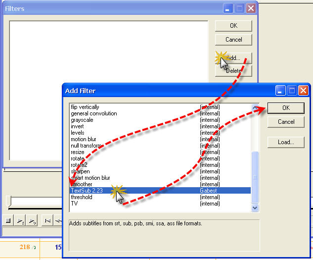 לחצו על "Add" ובחלון שנפתח בחרו "TextSub 2.23" ולחצו על "OK":