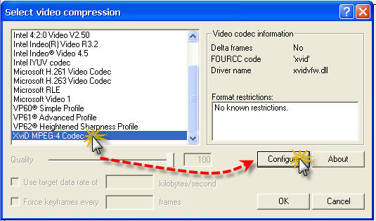 בחלון שיפתח, בחרו "XViD MPEG-4 Codec" ולחצו על "Configure":
