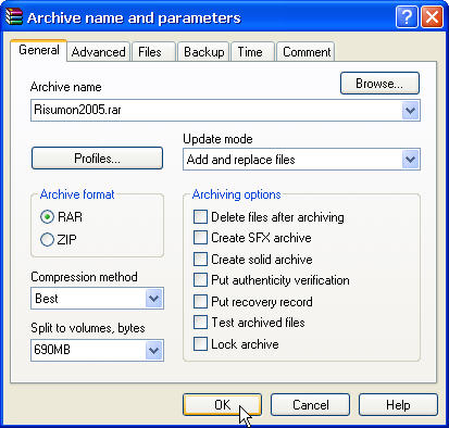 עכשיו ב Archive name בוחרים את השם של הקובץ החדש שאנחנו רוצים שיווצר.