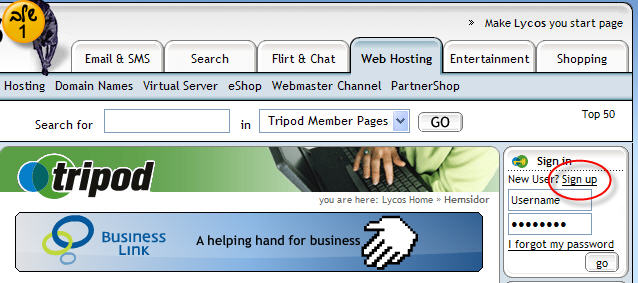 Lycos, Tripod, אחסון, חינם, חינמי, mysql.