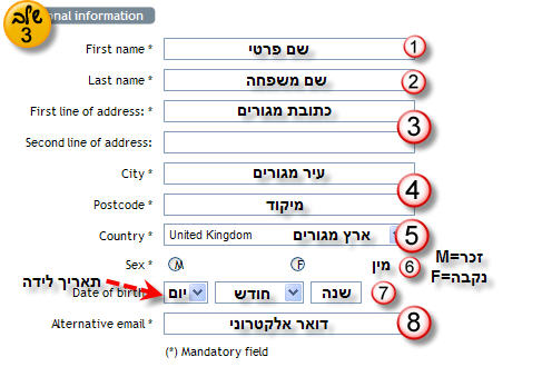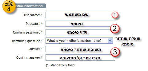 כעת אני יסביר על ההרשמה המכילה 3 שלבים.