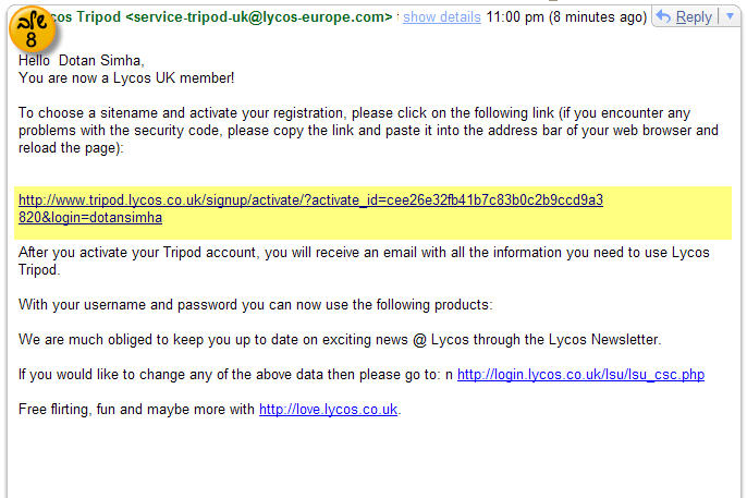 8. בהודעה שקיבלנו, נחפש קישור דומה לקישור המסומן: