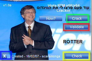 תיכנסו שוב ל-WINDOWS VISTA CRACK--ENRIKO ואז תחלצו על כפתור ה-Validate(מסומן בריבוע אדום)