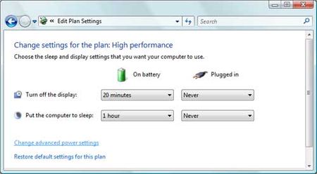 ביחרו בניהול העדפות כיבוי וליחצו על Change Plan Settings