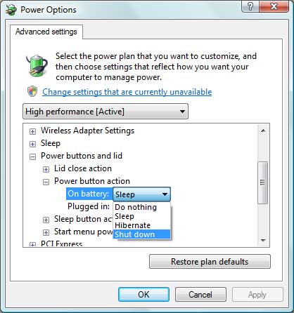 ליחצו על ה - Sleep באפשרות הריאשונה On battery וביחרו ב Shut down