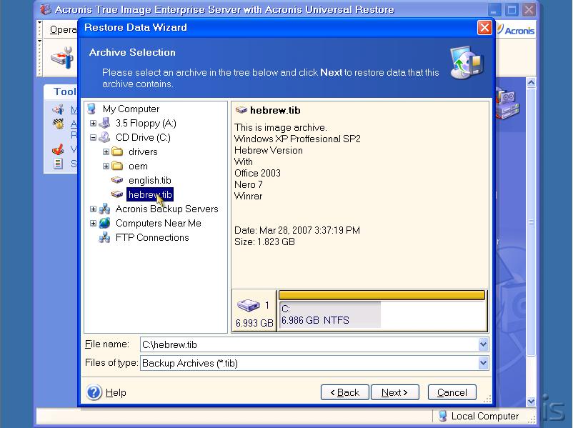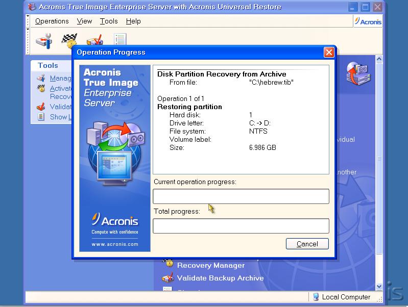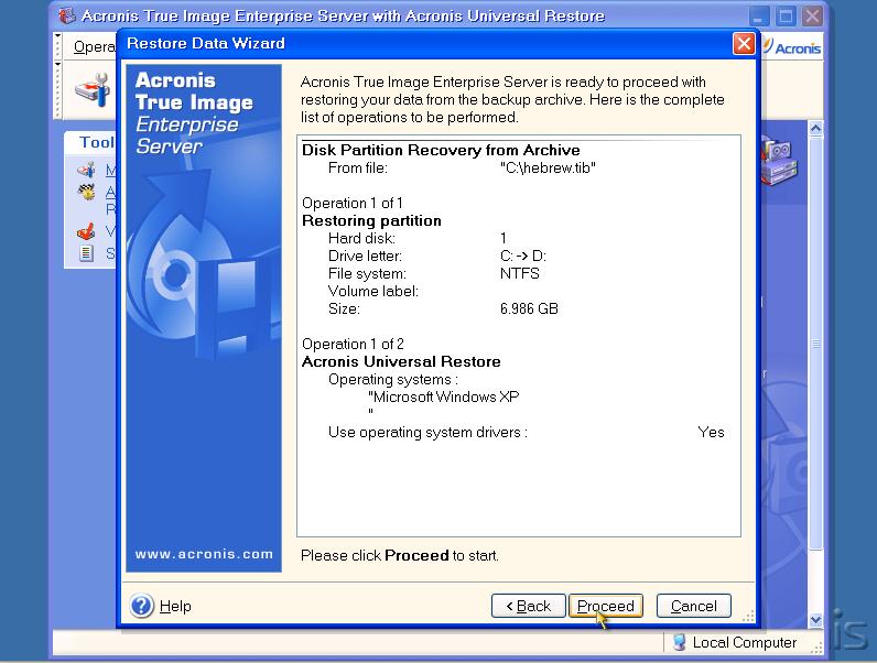 מילות מפתח:restore,acid,img,image,שחזור,אימג',פריסה,חילוץאז הנה המדריך לפניכם , אם יש לכם שאלות אל תהססו לשאול פה או בפרטי לחצו על האופציה הראשונה והמתינו לטעינת המסך השני כעת שוב לחצו על האופציה הראשונה והמתינו לטעינת המסך הבא כעת ביחרו ב Recovery ואז לחצו Next ביחרו את האימג' לשחזור , במקרה זה בחרתי בגרסאת הDVD בגרסא העברית כעת אופציה ראשונה וNext סמנו בV את כונן C עכשיו בחרו אם ברצונכם לשנות את גודל המחיצה או לא בחרו לאן אתם רוצים לשחזר את קובץ התמונה(IMG) פשוט לחצו Next או סמנו משהו אחר כעת אם בחרתם באפשרות שאתם תקבעו את גודל במחיצה אז בעזרת השורה באמצע והעכבר תוכלו לקבוע את גודלה פה לחצו Next זו האופציה הכי חשובה ! חייבים לסמן את האופציה השנייה כי אם לא , לא תעבוד במערכת לאחר סיום התהליך פה אתם יכולים לבחור דריברים ספציפיים שיותקנו כאן אתם יכולים לבחור תיקייה ספציפית שבה יש דריברים לחצו Proceed והתהליך יתחיל , הוא אמור להמשך בין 5-20 דק' תלוי במהירות המחשב וכונן התקליטורים. כל הזכויות על המדריך שמורות לA-J אין להעתיק את המדריך ללא רשות!