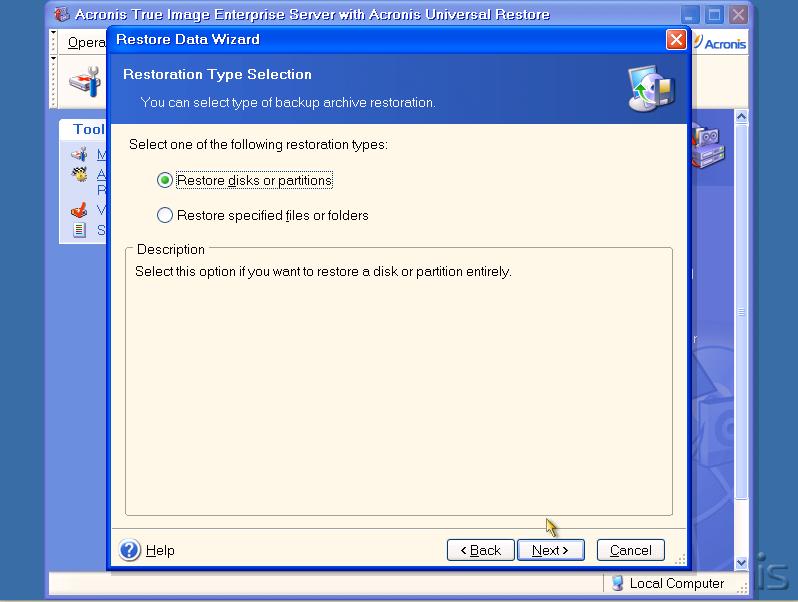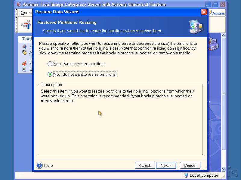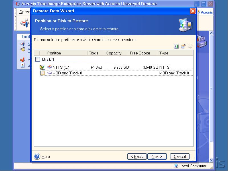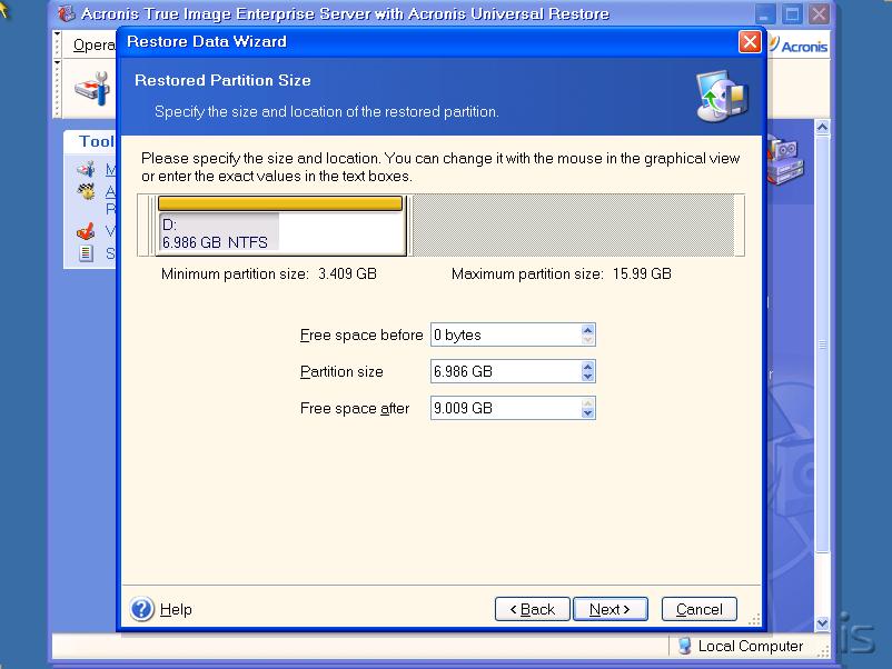 כעת אופציה ראשונה וNext סמנו בV את כונן C עכשיו בחרו אם ברצונכם לשנות את גודל המחיצה או לא בחרו לאן אתם רוצים לשחזר את קובץ התמונה(IMG) פשוט לחצו Next או סמנו משהו אחר כעת אם בחרתם באפשרות שאתם תקבעו את גודל במחיצה אז בעזרת השורה באמצע והעכבר תוכלו לקבוע את גודלה