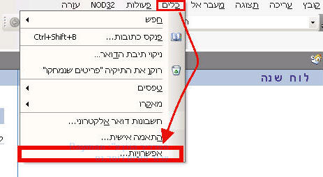 כעת פתחו את תוכנת האוטלוק שלכם ובתפריט בחרו באפשרות "כלים" ואז "אפשרויות":