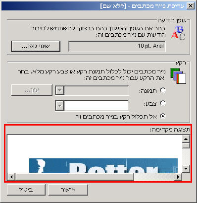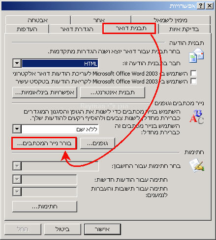 לאחר מכן תקבלו את המסך הבא ותלחצו על "תבנית דואר" ולאחר מכן "בורר נייר המכתבים..." :