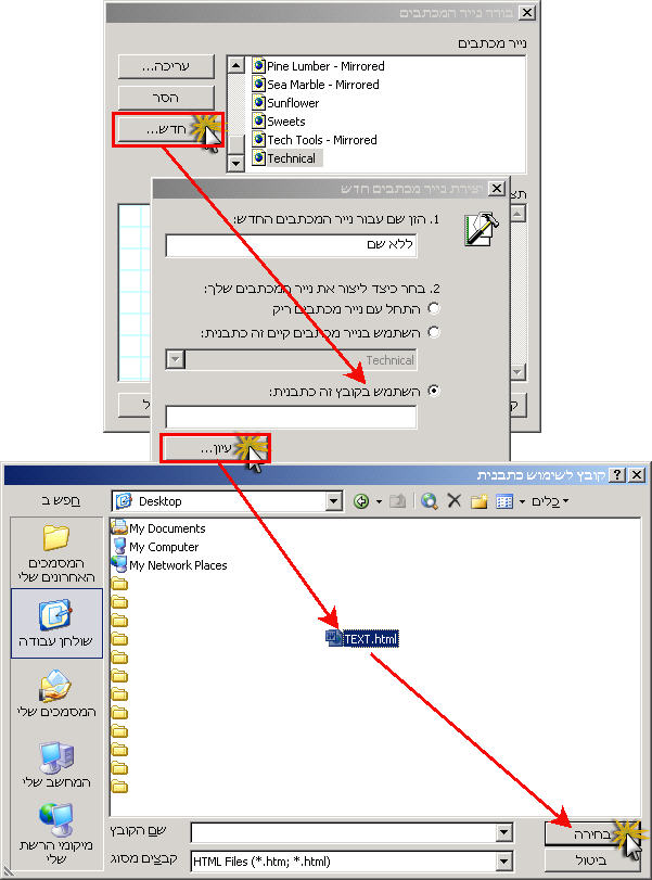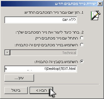 כעת פעלו עפ"י החיצים על מנת לבחור את הקובץ טקסט ששמרתם בוורד