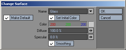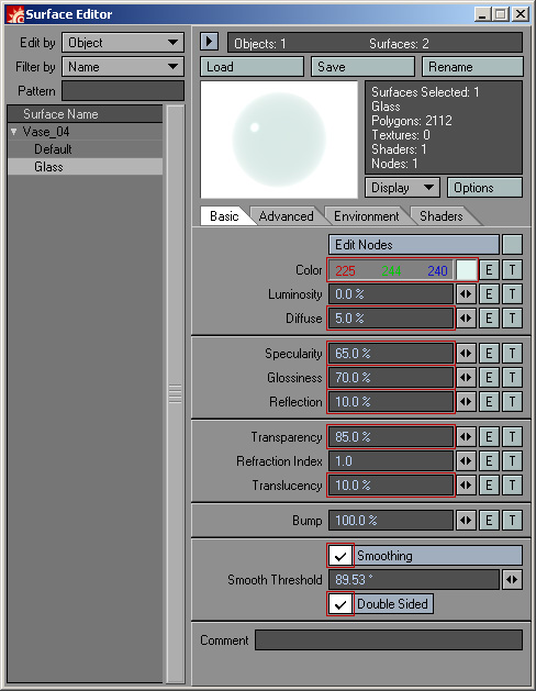 Color - הצבע של החומר. שיניתי לצבע כחול-ירוק בהיר של זכוכית
