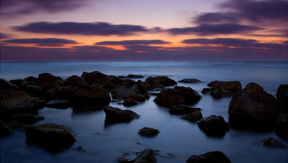 חשיפה ארוכה על מים יוצרת משטח מים חלק לגמרי אם הים בלי גלים (או בצורת ערפל אם הוא גלי). לפני השקיעה, או מיד אחריה עדיין יש לנו יותר מדי אור כדי להשיג חשיפות של 15 שניות, לכן יש להשתמש בפילטר ND שתפקידו הוא להפחית את כמות האור בצורה שווה בכל הגוונים.