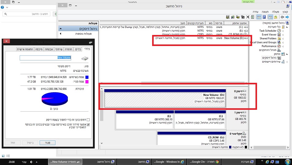 הופעת הבעיה: ניתקתי פיזית את כונן C (וכונן E) שעליו קיימת מערכת הפעלה WIN8. התקנתי על כונן D את WIN7 (הייתי צריך לעשות בדיקה על WIN7). לאחר מכן החזרתי את כונן C. הWIN הריץ בדיקה לכונן D ולאחר מכן לא היה ניתן לגשת לקבצים. יש לציין שלא ניתן לגשת לקבצים גם עם מפעילים את המחשב עם דוס. הוא מראה את שמות הספריות שבכונן אבל לא נותן להיכנס לספריה.
