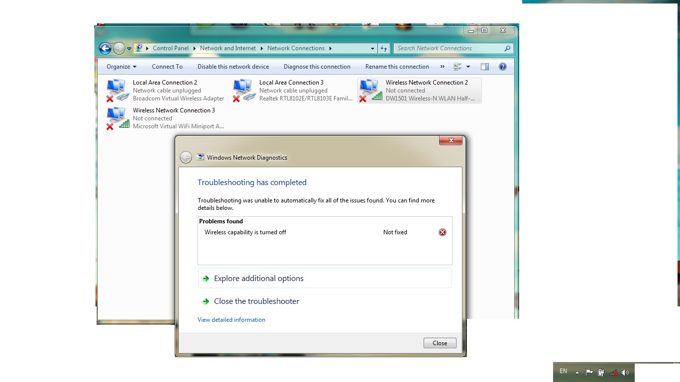 הwireless קרס. האם זה בעיית הגדרה או שהכרטיס רשת נדפק? (+תמונה)