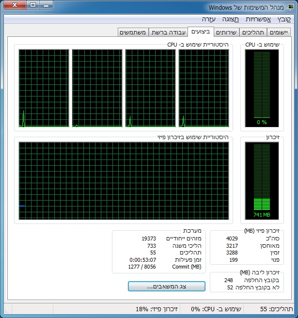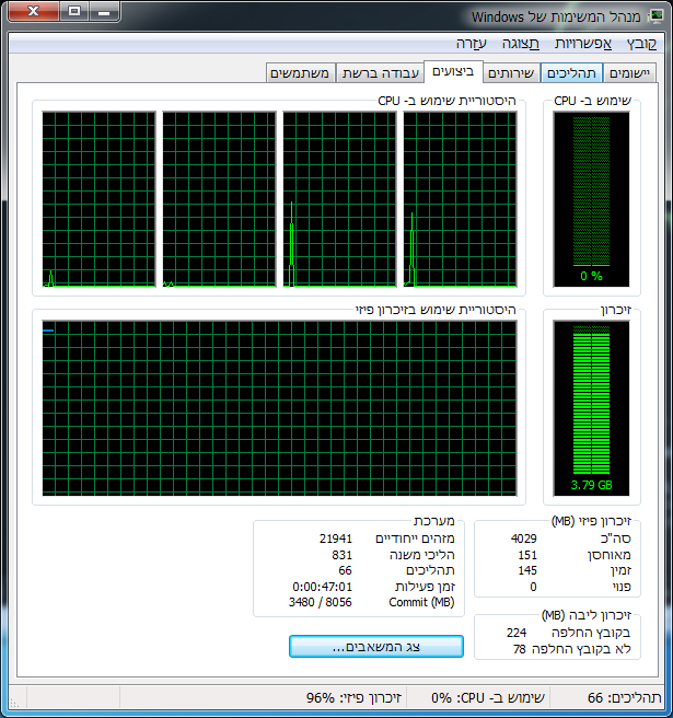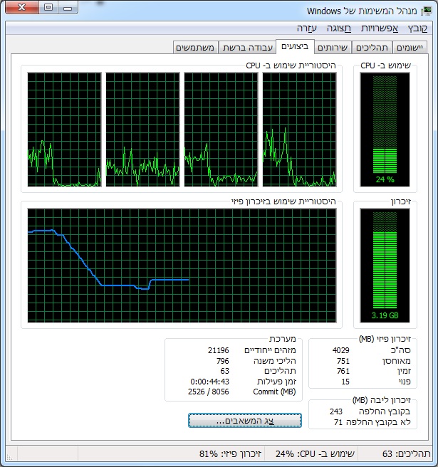 בזמנים שאתה מרגיש שהמחשב לא מתפקד כמו שצריך, פתח את מנהל המשימות על הכרטיסיה "ביצועים" ובדוק מה מצב הזכרון ומה מצב המעבד. האם המעבד הוא זה שנטחן? האם הזכרון מלא? (קשה לי להאמין שהצלחת למלא 8GB בלי שימוש במכונות וירטואליות שרצות ברקע...)