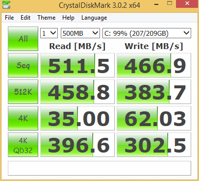 אם תשווה את מה שאתה קיבלת למה שאני קיבלתי בבדיקה הקריאה אותו דבר והכתיבה אצלך באיזה 66MB/s יותר איטי