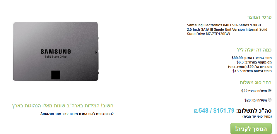 שאלתי קרובים שגרים שם, אם אפשר לשלוח אליהם ושהם ישלחו אלי במעטפה מרופדת פשוטה, כי המישקל של SSD הוא נוצתי .