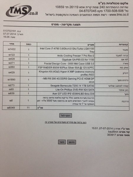 מפרט זה הורכב ב - www.TMS.co.il - רשת חנויות המחשבים האמינה והמקצועית בישראל