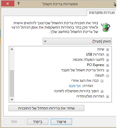 "המסך מתכבה למרות שהגדרתי לו לא להתכבות בכלל בהגדרות חשמל מה הבעיה?"
