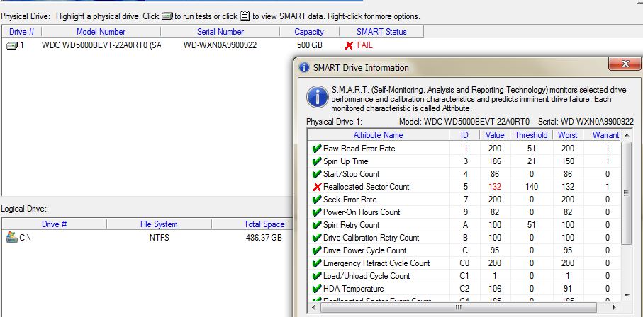 לא נראה שעשית את הEXTENDED\LONG TEST אלא רק את הקצרה