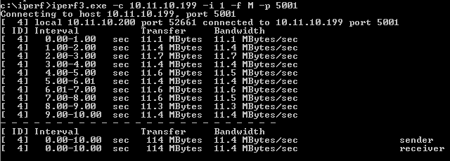 local 10.1.1.1 port 5001 connected with 10.6.2.5 port 33453