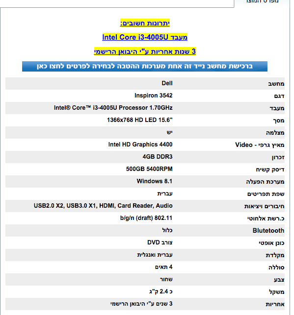 "מבקש חוות דעת על הנייד הבא Dell Inspiron 3542 i3"