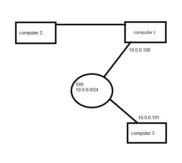הרצון הוא לחבר את computer 2 לרשת 10.0.0.0/24 ע"י חיבור שלו ל Computer 1 ע"י כרטיס רשת נוסף במחשב.