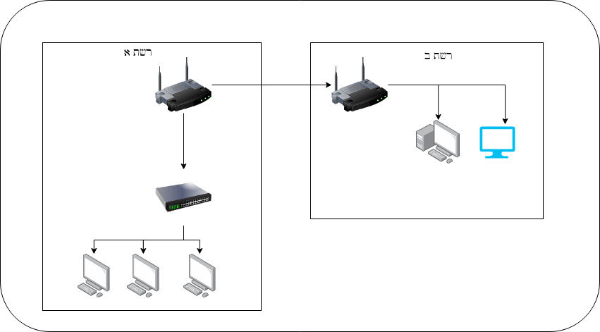 המטרה שישארו 2 רשתות LAN נפרדות אבל ב 2 הרשתות יהיה אפשר לגלוש באינטרנט על התשתית הקיימת ברשת ב'.
