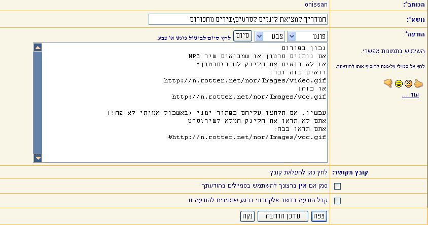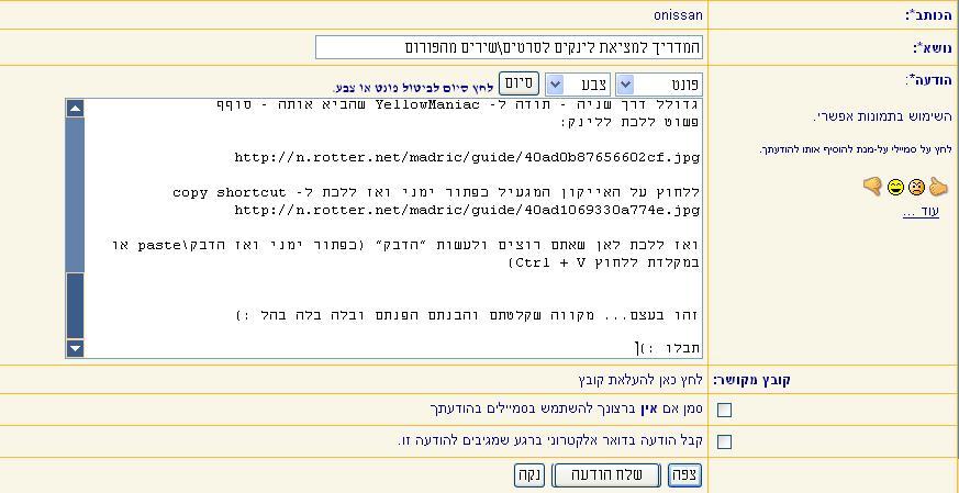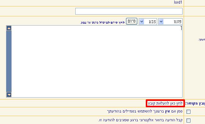 הגענו לטופס הכתיבה. לוחצים על "לחץ כאן להעלאת קובץ"