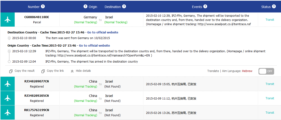 קודם כל Track17 אכן פועל טוב, בייחוד שימושי למי שקונה ומוכר הרבה.