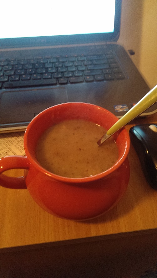 משרים כשעתיים את העדשים הירוקות קוצצים דק דק את הבצל ומטגנים אותו עד לשקיפות בסיר עם קצת שמן זית. מורידים מהאש, נותנים לו להתקרר קצת ומוסיפים מים חמים ומחזירים לאש. מוסיפים 3 כפות אבקת מרק פטריות (קנור \ אוסם וואטאבר) ואת הפטריות והתפו"א .. מרתיחים, מבשלים 10 דקות על אש קטנה.. מורידים, טוחנים הכל עם בלנדר.. מחזירים לאש ומוסיפים את העדשים.. מחזירים לרתיחה.. מתבלים עם פלפל מלח ואגוז מוסקט.. 10 דקות ומורידים... תוצאה נם נם נם