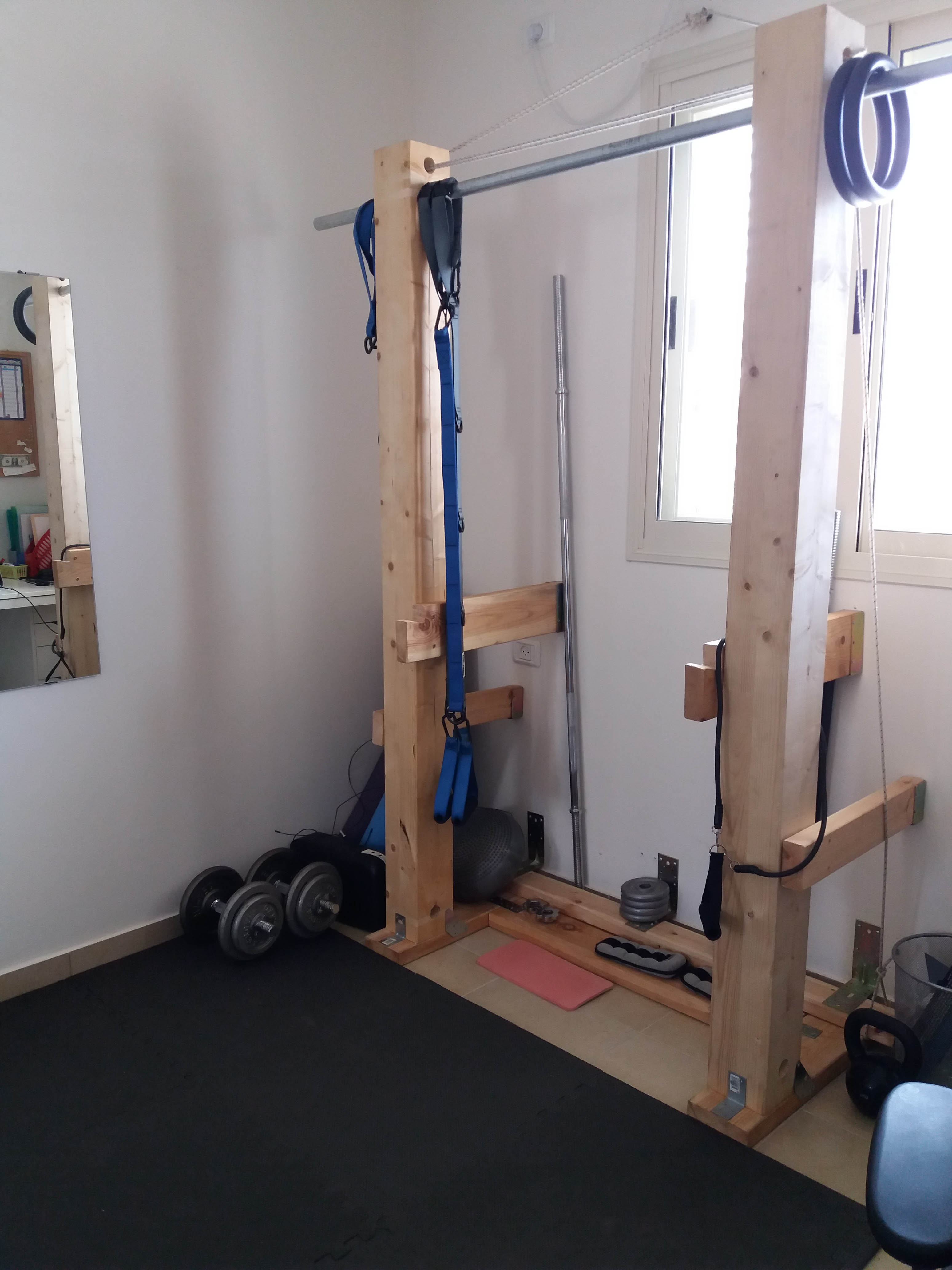 עשיתי לו כמה בדיקות לנסות לפרק אותו עם משקלים שונים בכיוונים שונים והוא עמד יפה בניסיונות, כך שאני מכריז עליו כבטוח למתאמן ממוצע. הוא מחובר בצידו הימני וצידו השמאלי ל 3 נקודות שונות לקיר חיצוני של בית בעזרת חיבורי פרגולה. למעלה יש עוד חיבור של חבל שלדעתי אני אוריד בהמשך כי בתכלס סתם הוספתי את זה מהיסטריה של "ליתר ביטחון". עלה לי סך הכל כ 500 ש"ח כל הסיפור כך שהחסכון גבוה מאוד בהנחה שכלוב אימונים הכי זול מתחיל ב 1800 שח בערך. יש לי שם אפשרות למתח + TRX, אפשרות לבנץ' פרס, בהמשך אני יוסיף עוד נקודות עיגון למוט בגבהים שונים.